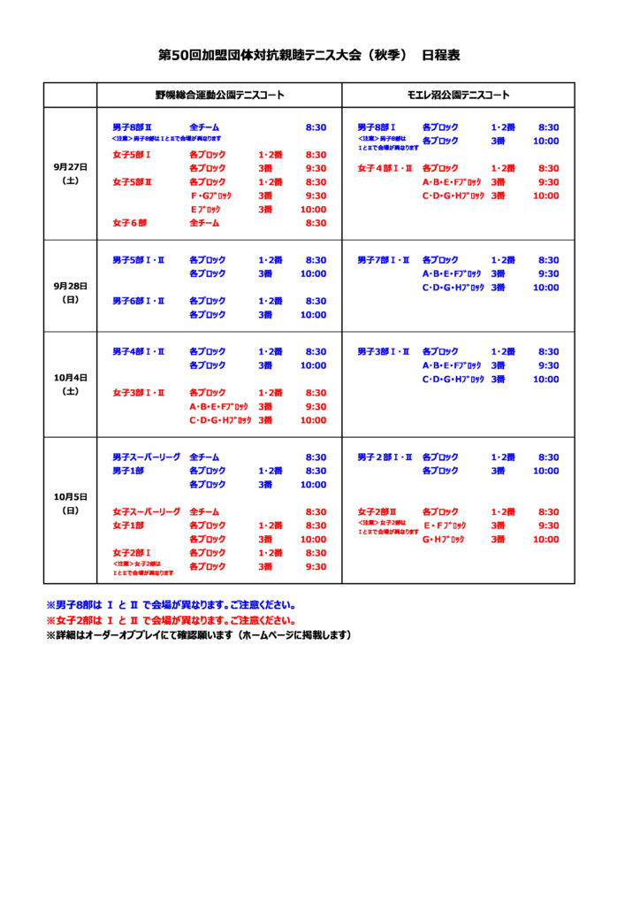 加盟団体対抗親睦テニス大会(秋季)が開催されます!
